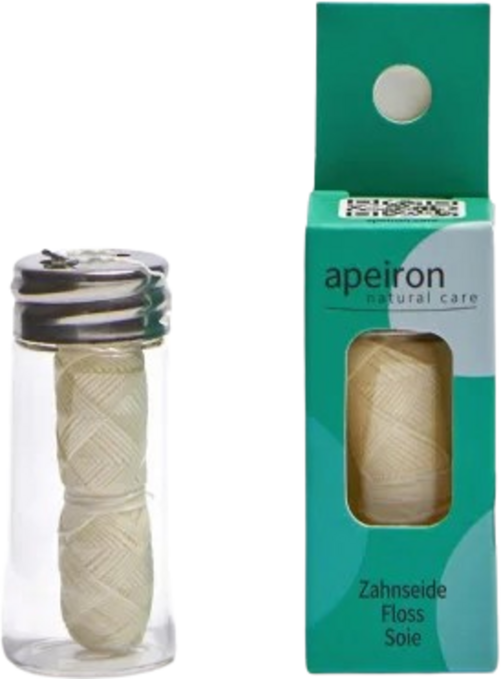 Det veganske og miljøvennlige alternativet fra apeiron består av polymelkesyre, som er avledet fra mais, og er biologisk nedbrytbart. Voksen sikrer enkel rengjøring av tannmellomrommene, og på den noe grovere overflaten fester matrester seg lett. Produktet kommer i en liten glassbeholder hjem til deg.