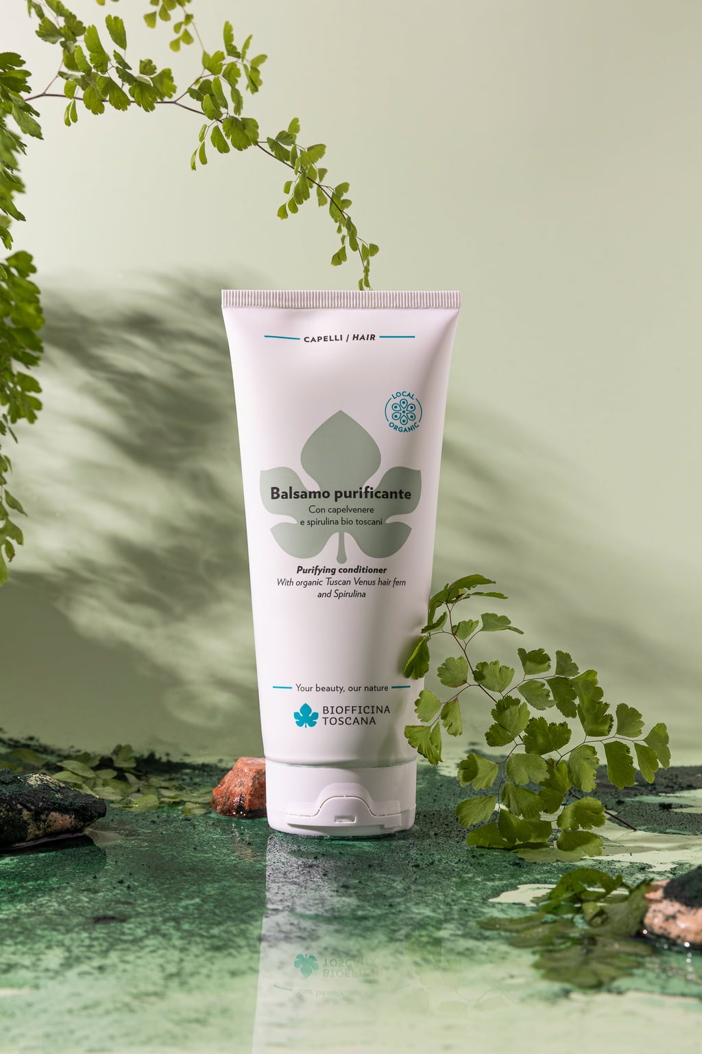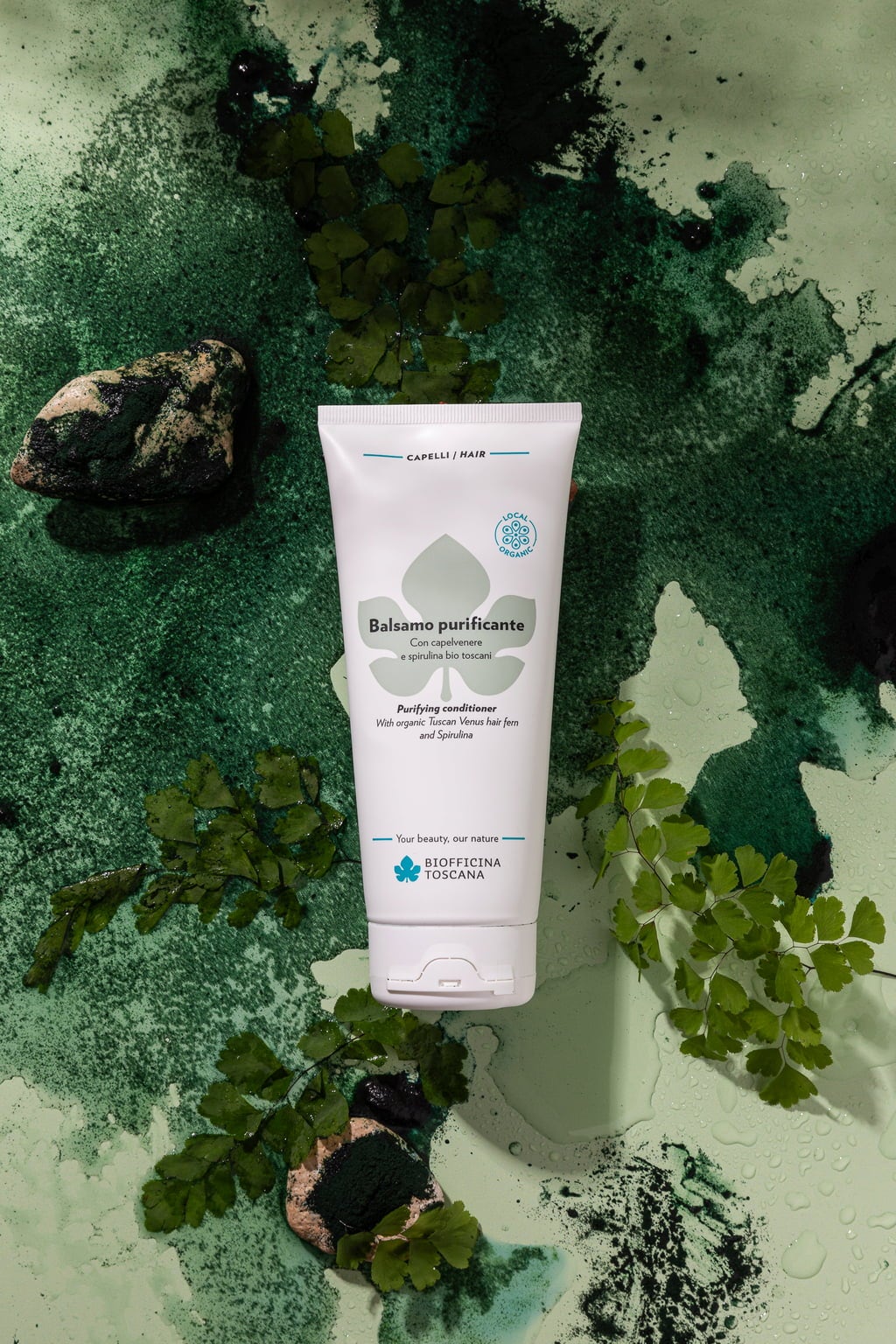 Detta hårbalsam är speciellt framtaget för oljiga hårrötter och mjäll. Dess formula innehåller extrakt från toskanska råvaror, såsom jungfruormbunke och spirulina, vilka har rengörande och revitaliserande egenskaper. Den ger glans och vård utan att tynga ner håret.