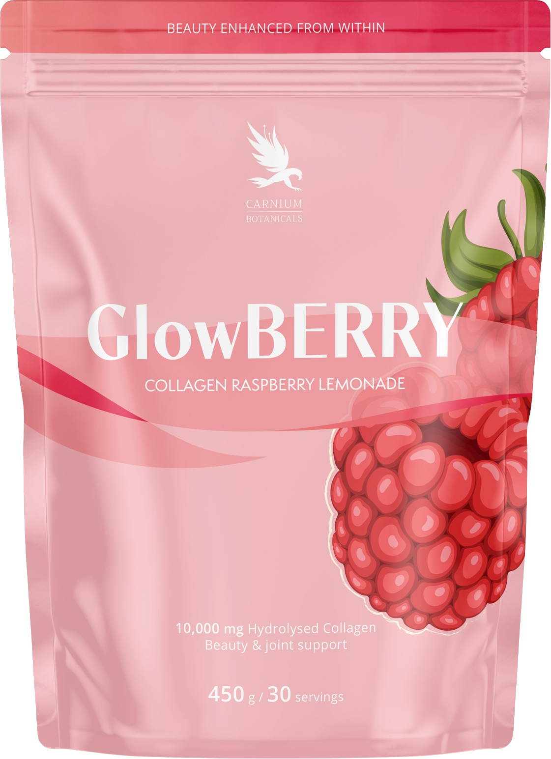 Carnium Botanicals GlowBERRY Kollagen Hallonlemonad, 450 g