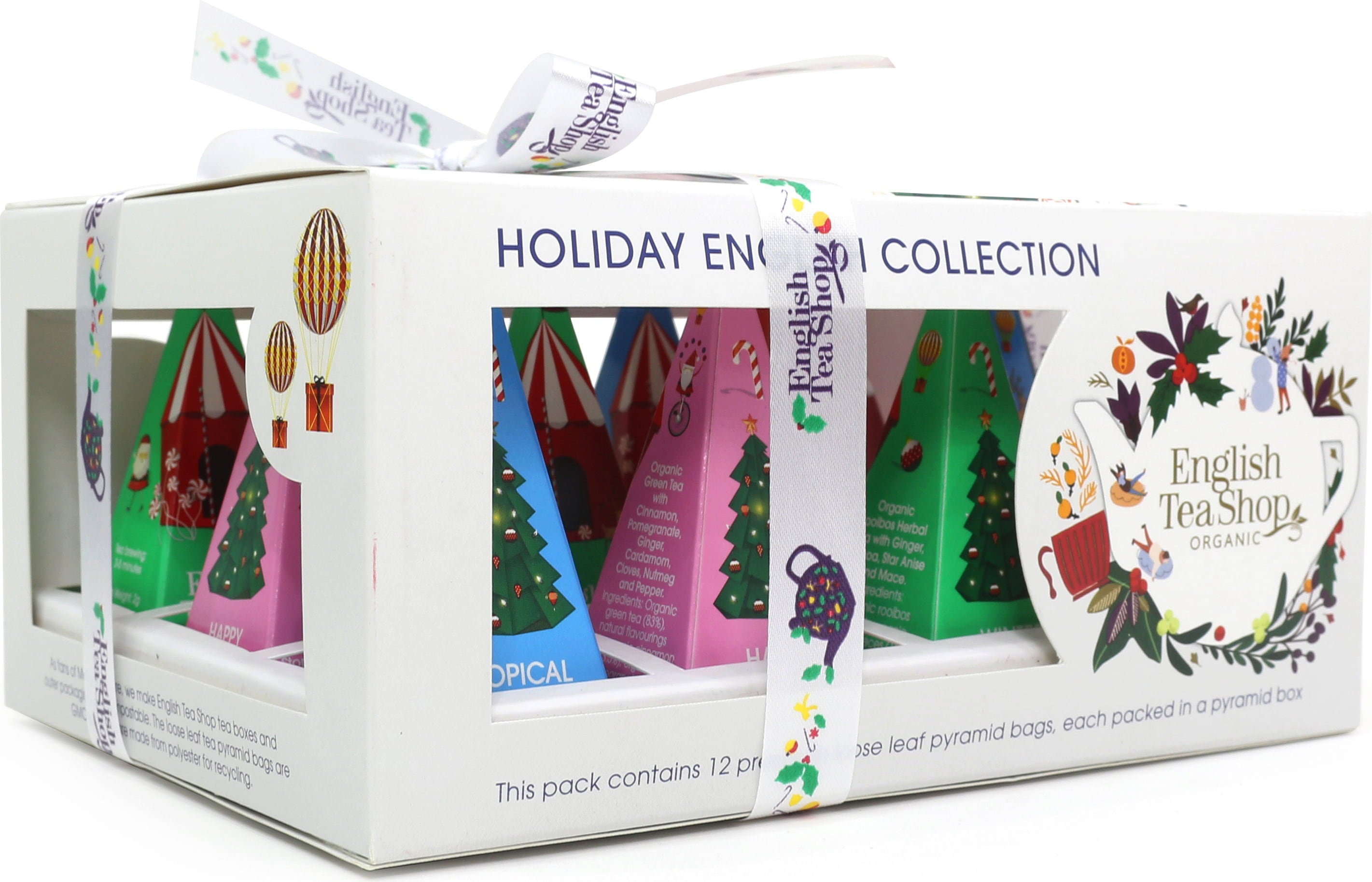 Detta vackert förpackade presentset innehåller 12 fina ekologiska premiumteer i fyra vinteriga smaker. Den perfekta presenten till den hemliga tomten eller att lägga under granen.