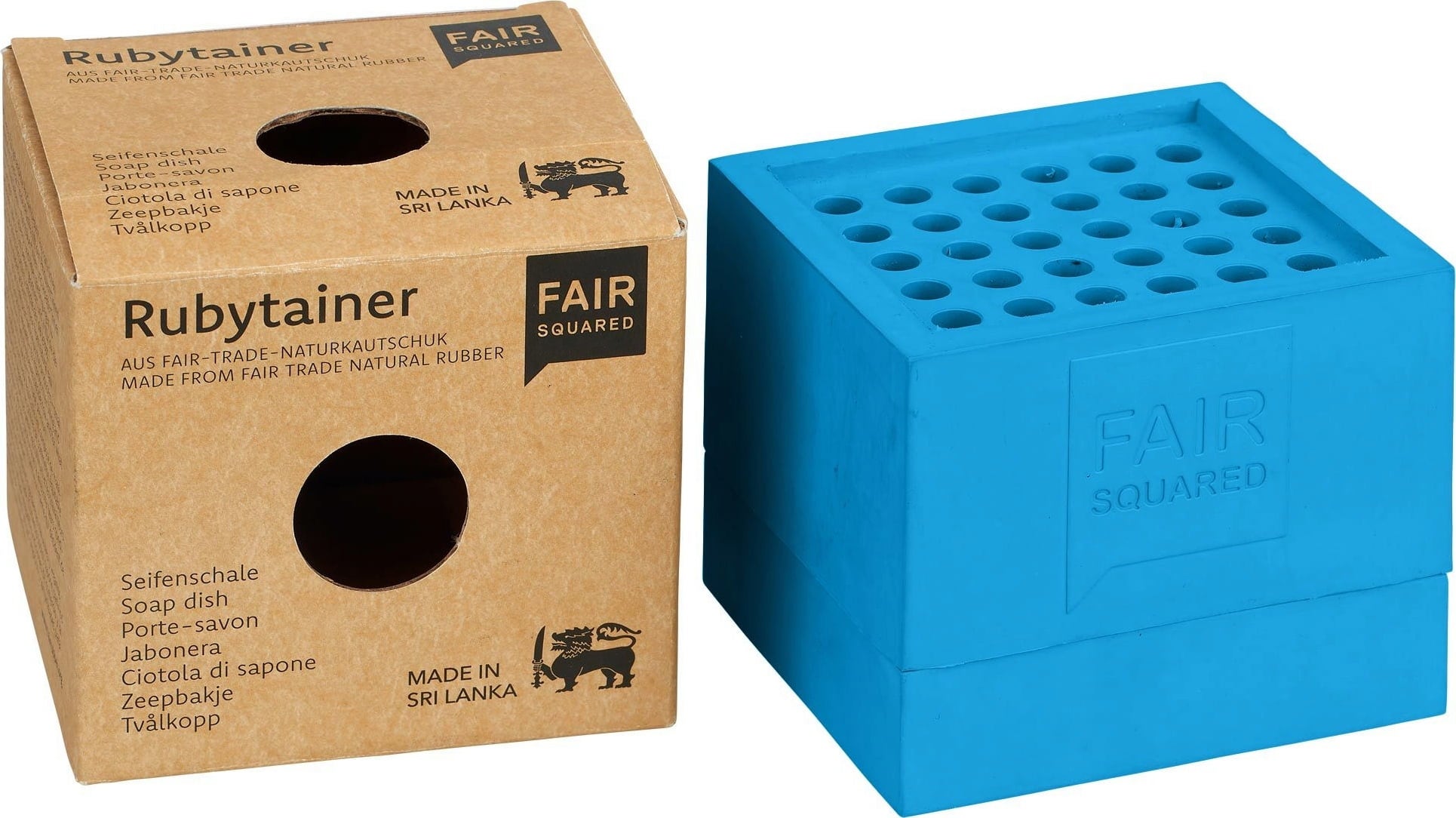 Den praktiska Rubytainer från FAIR SQUARED har en modern design och är en riktig hjälp när det kommer till förvaring eller transport av tvål och kosmetika i fast form. Det rättvisemärkta naturgummit skyddar också alla typer av glasbehållare från att gå sönder när du reser.
