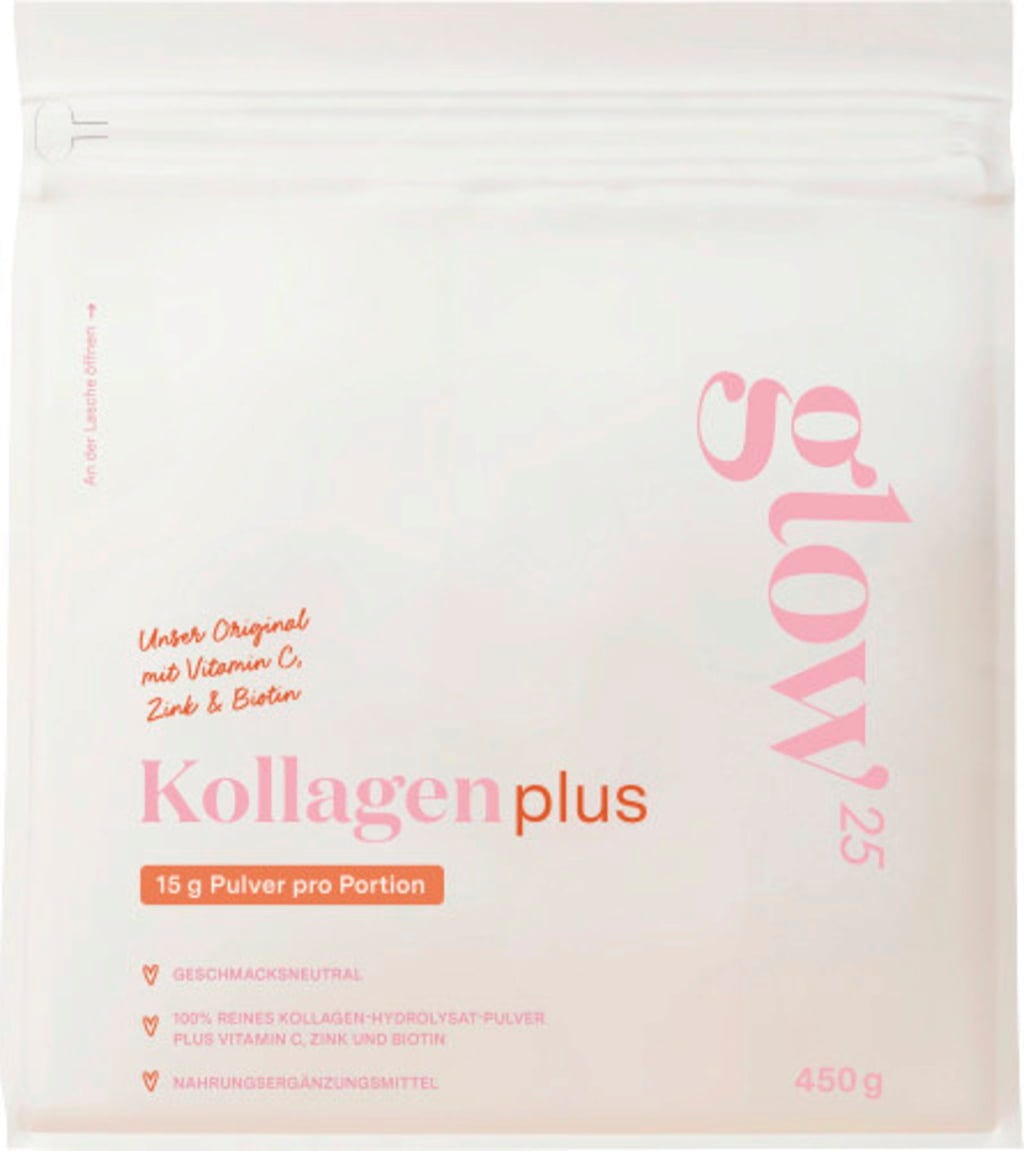 Glow25 Collagen Plus kombinerar högkvalitativt kollagenhydrolysat med C-vitamin, zink och biotin. Det smaklösa pulvret kan enkelt röras ut i kalla och varma drycker eller livsmedel - perfekt för daglig användning.