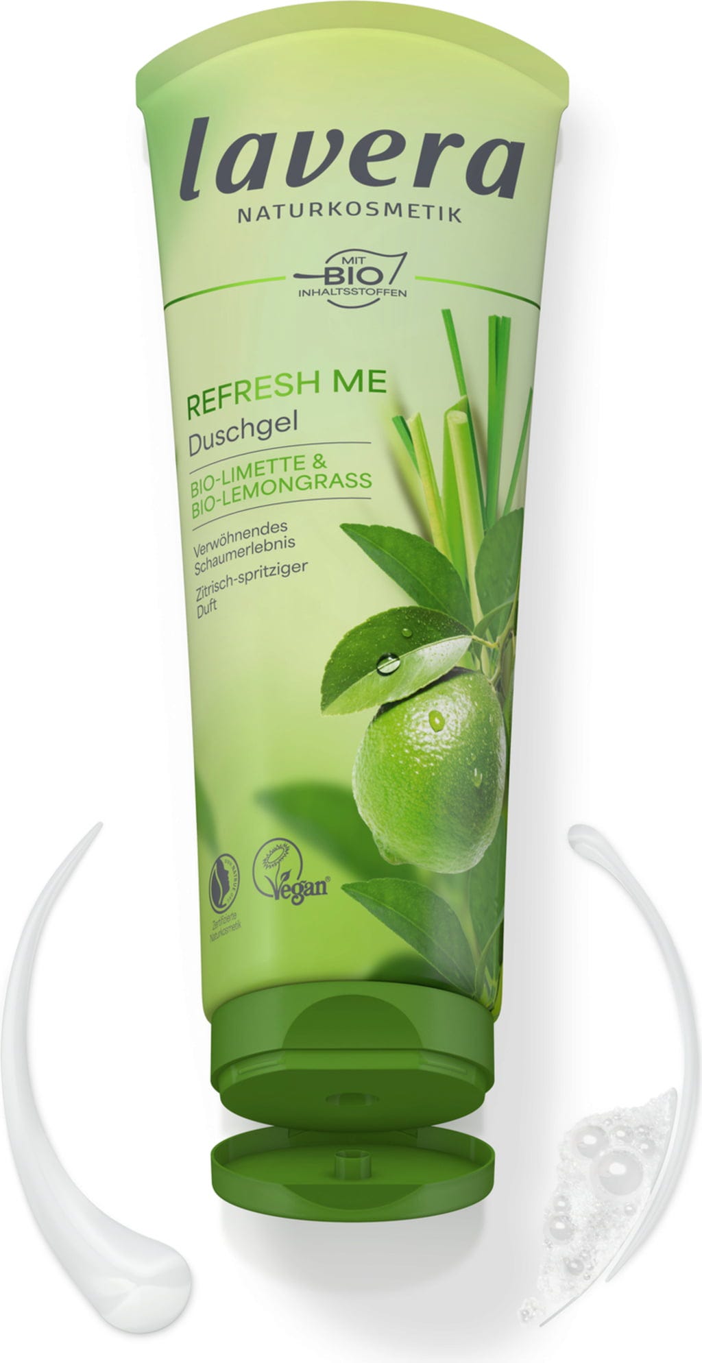 Fräsch ekologisk lime kombineras med ekologiskt citrongräs för att skapa en vitaliserande doftkomposition som ger en daglig friskhetsboost. Duschgelen imponerar också med sin särskilt milda, pH-neutrala formula och rengör utan att torka ut.