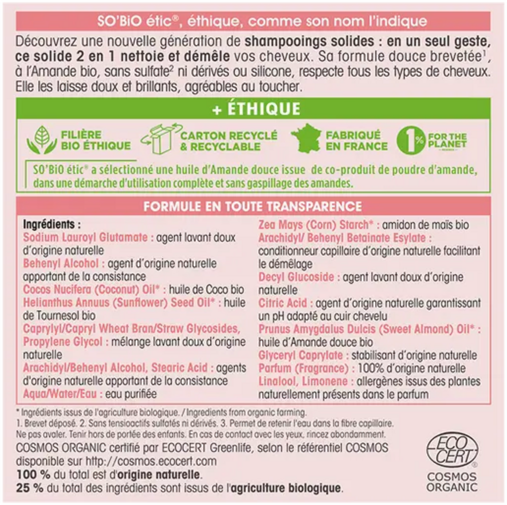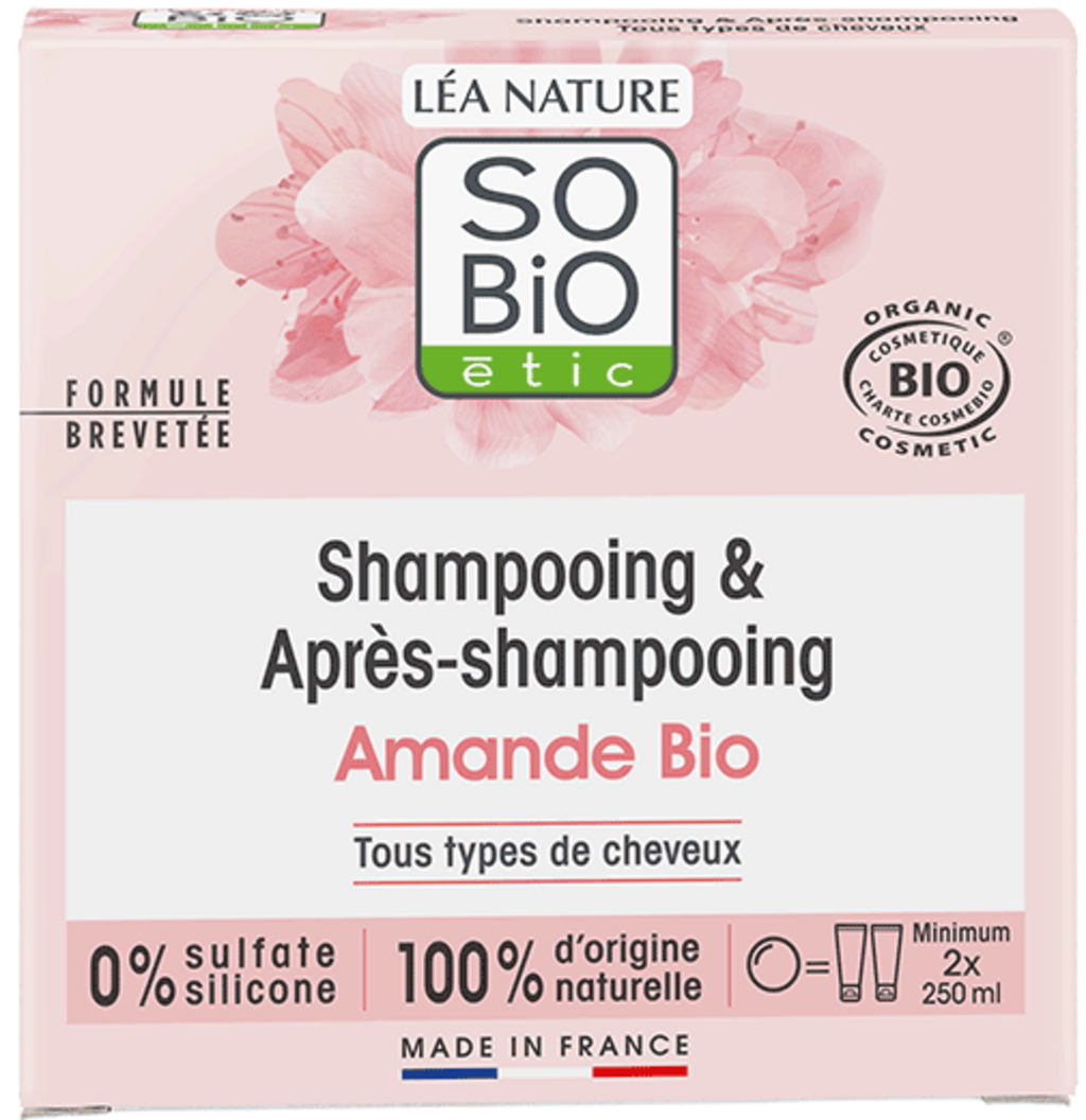 LÉA NATURE SO BiO étic 2-i-1 fast sjampo og balsam med mandel, 65 g