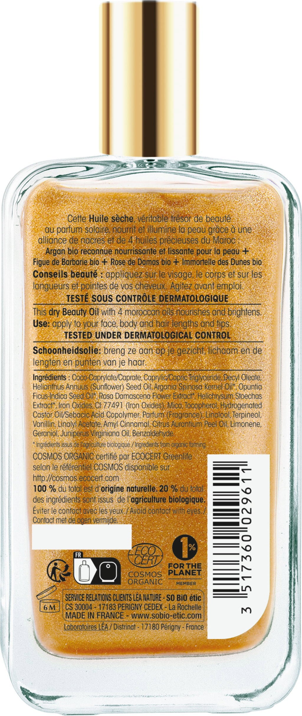Denna torra olja är ett verkligt skönhetselixir som består av fyra värdefulla marockanska oljor. Den ger näring, absorberas snabbt och ger ett fint skimmer på huden, medan dess somriga och soliga doft omsluter sinnena.