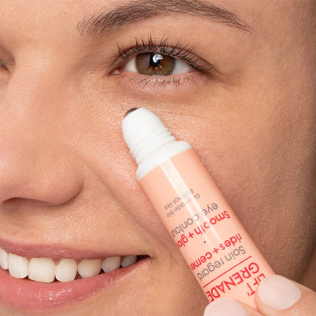 Øyeområdet er spesielt sensitivt og viser raskt små tørrhetslinjer. Med denne gelen kan konturen pleies spesielt godt. Den inneholder antioksidantrike ekstrakter fra økologisk granateple samt ekstrakter fra strandkjeks, som utgjør et plantebasert retinol-alternativ. I synergi tilbyr de glattende og fuktighetsgivende egenskaper. Takket være den behagelige gelteksturen kan produktet enkelt påføres med roll-on og gir en følelse av friskhet.