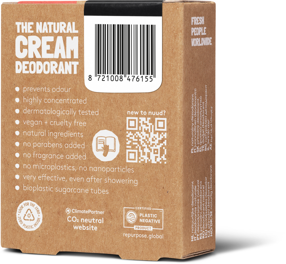 Med denna krämdeodorant blir du väl omhändertagen! Tack vare sin veganska och doftfria formel med mikrosilver och zinkoxid skyddar den dig mot oönskade lukter. Den består av bara ett fåtal ingredienser, håller dig torr och är särskilt skonsam mot huden.