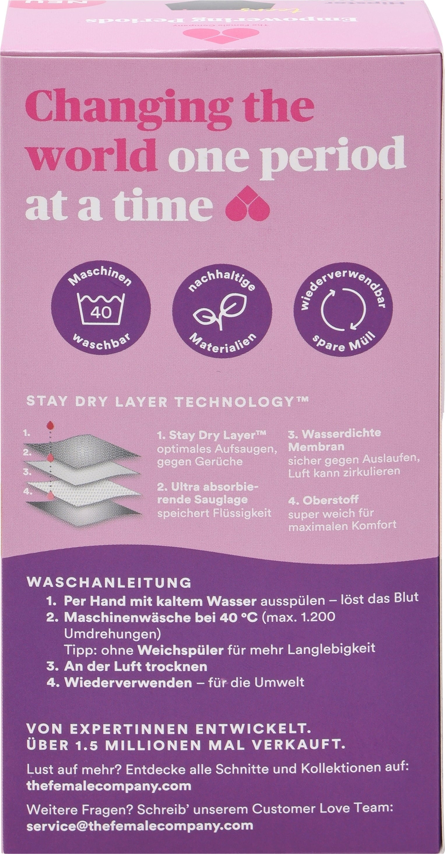 - Det är bäst att använda milt tvättmedel och undvika sköljmedel för att skydda fibrerna i trosorna och bevara deras maximala absorptionsförmåga.