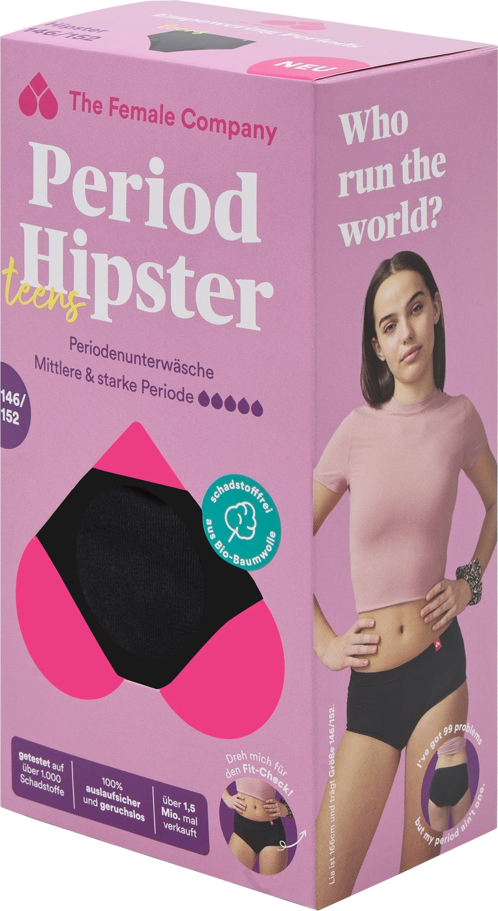 Dessa mensunderkläder är speciellt framtagna för tonåringar. De ser ut som vanliga underkläder, är bara 1 mm tjockare än vanliga underkläder, är särskilt absorberande och ger därför maximal komfort under mensen. Tack vare den innovativa Fluid Protection®-sömbehandlingen förhindrar den sidoläckage och garanterar säkerhet.