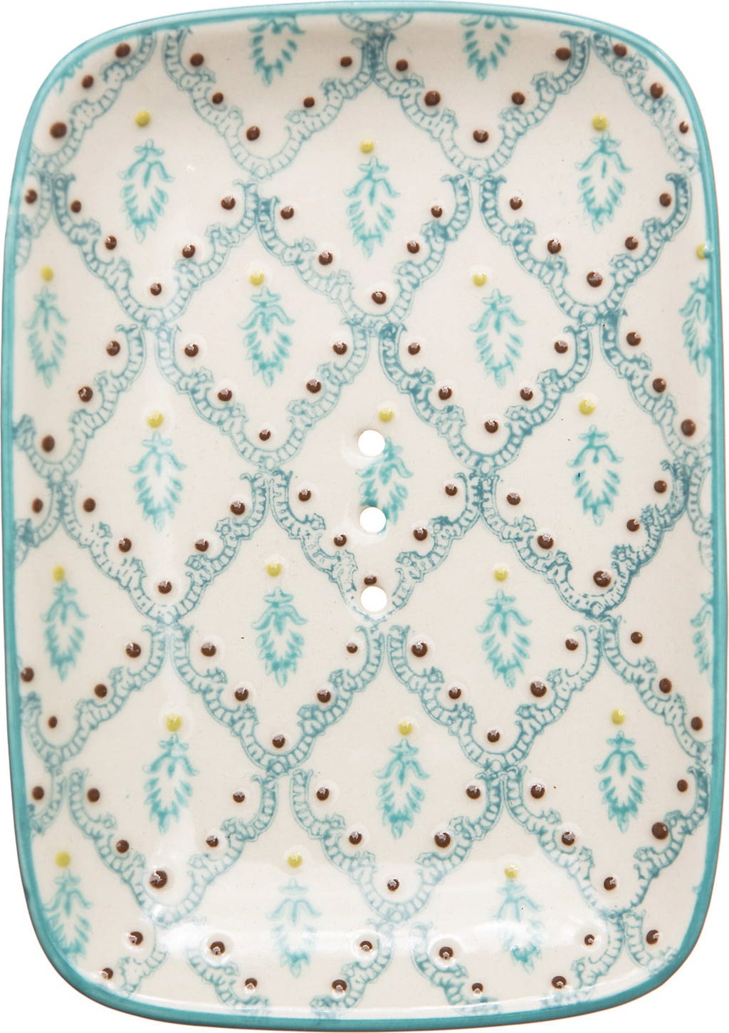 Den rektangulära grundformen med rundade hörn, det ömtåliga, handstämplade trycket och dräneringshålen för att tillåta vatten att rinna bort gör denna tvålkopp till ett måste för ditt badrum! Dess delikata design i känsliga färger gör den till en blickfång och ger en individuell touch.