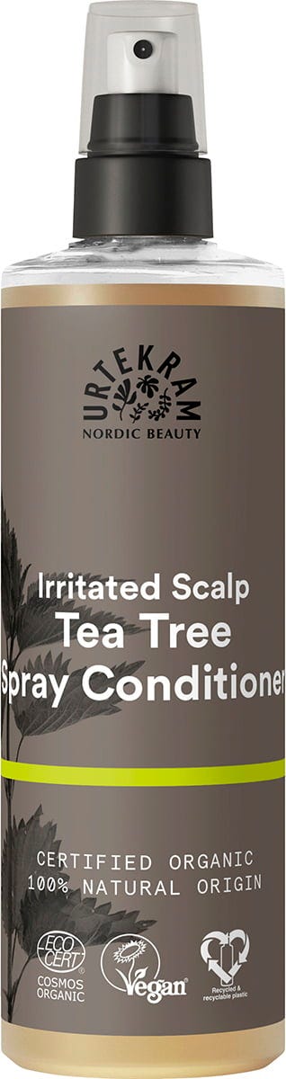 Den fräscha, kryddigt doftande Tea Tree Spray Conditioner hjälper irriterad hårbotten tack vare ekologisk tea tree-olja. Ekologisk aloe vera återfuktar huden och håret, medan närande ekologisk lavendelolja gör håret silkeslent.