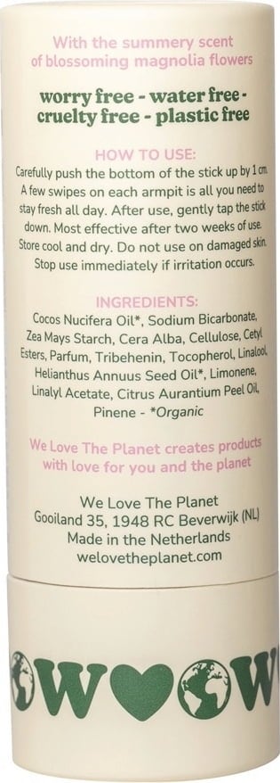 Med sin blommiga och feminina magnoliadoft som doftar vår kommer denna deodorant att omsluta dina sinnen! Dess naturliga formula med bakpulver, majsstärkelse och vårdande oljor skyddar dig mot obehaglig svettlukt och vårdar dig samtidigt.